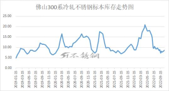 (圖中為佛山市場300系寬幅材料本庫存量走勢圖)
